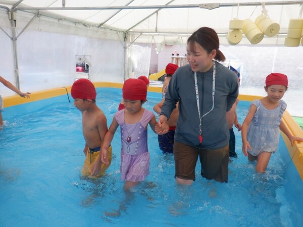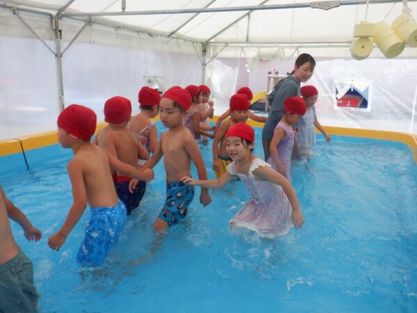 | 8月1日 金曜日 ゆりさん 最後のプール活動 プール掃除も頑張ってくれたゆりさん 今日は みんなで流れるプール遊び みんなでグルグル グルグル渦巻!! 手を離したら きゃあ〜!! ぐるぐるまわるよ〜 フープくぐりも楽しかったね 潜ったり 泳いだり プール大好き! プール活動 たのしかったね♪ |
