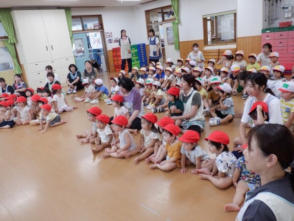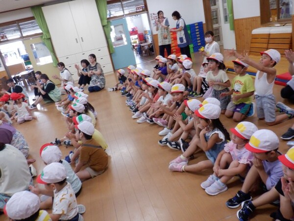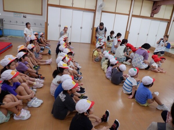 | 8月1日 金曜日 来週月曜日は みんなが楽しみにしている 「すいか割り」 クラスごとに すいかを割るよ〜! クラスカラーも決めたよ さくらさんはみどり すみれさんはきいろ ゆりさんはオレンジ 未満児さんは赤! みんなで すいか割り 頑張るぞ!エイエイオ〜!! |