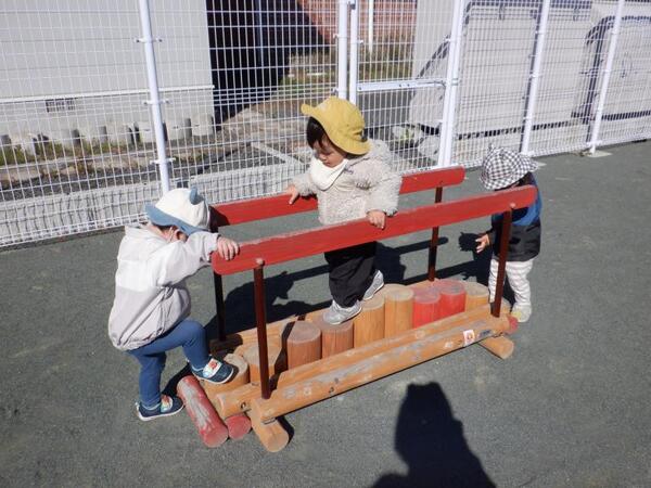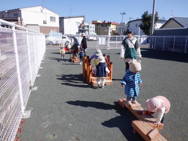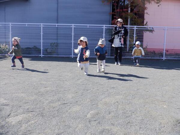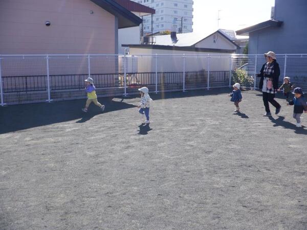 | 10月14日 火曜日 今日は、とっても良いお天気。 ちゅうりっぷさんは、裏園庭で遊びました。 遊具であそんで、広場でよーいドン! たくさん走りました。 キレイな青空の下、気持ちよく遊べたね! |