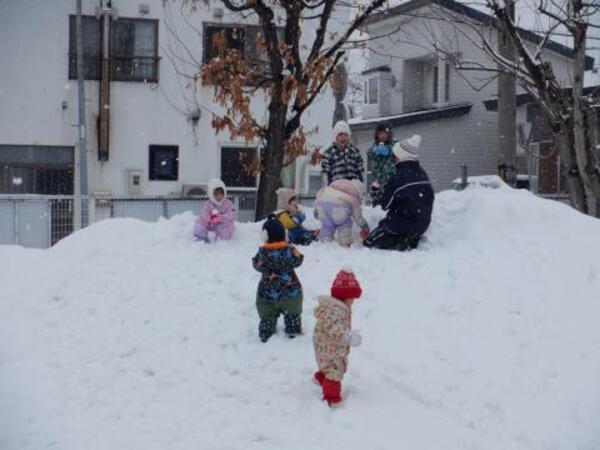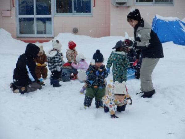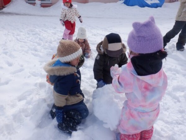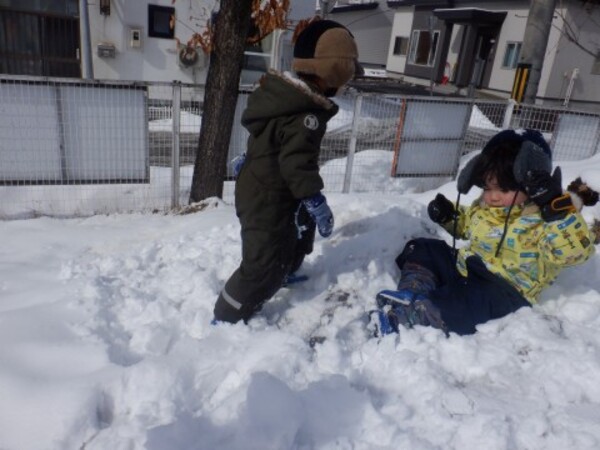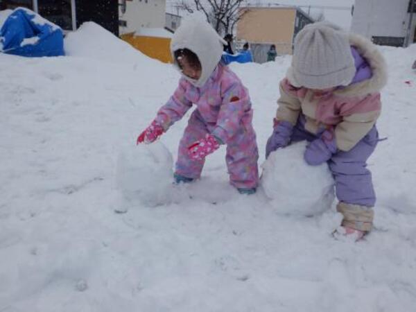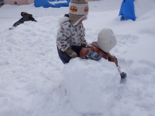 お庭で雪遊び!たんぽぽさん
