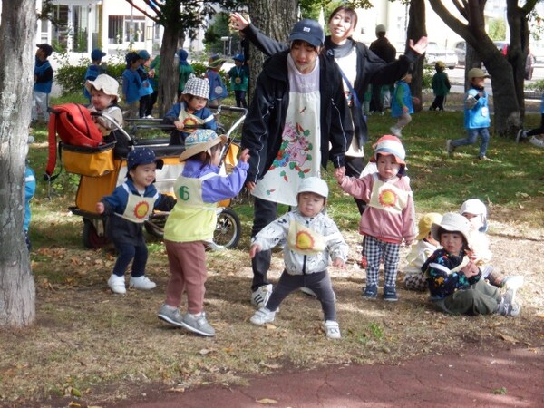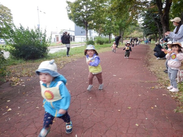 | 10月9日 木曜日 たんぽぽさん マラソンごっこ 先生の後から走るよ〜! 泣かないで最後まで走るよ〜! 頑張れ 頑張れ! みんなが応援してくれたよ〜 たんぽぽさんもどんぐりメダル ゆりさんからもらいましたよ 最後まで たんぽぽさん 頑張りました〜!! |
