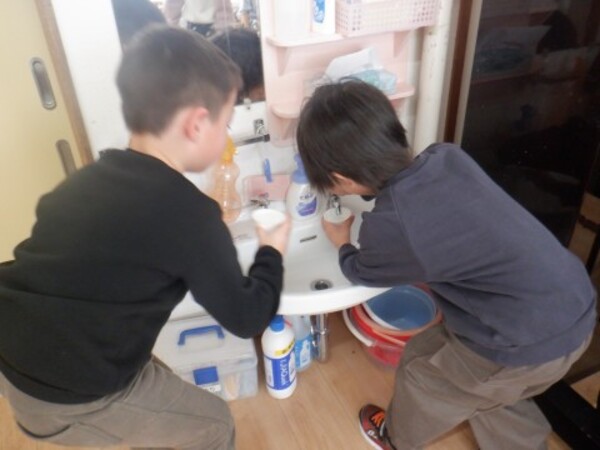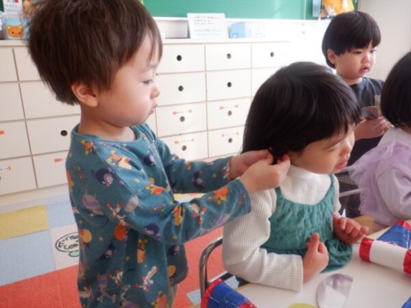 | 1月19日 月曜日 たんぽぽ美容室がオープン!! さあ どんな髪型にしますか? シャンプーしますね ドライヤーで乾かしますよ お客さんになったり 美容師さんになったり お友だちと一緒に楽しかったね♪ |