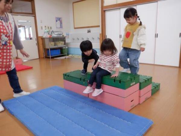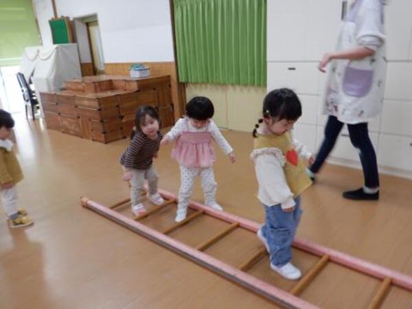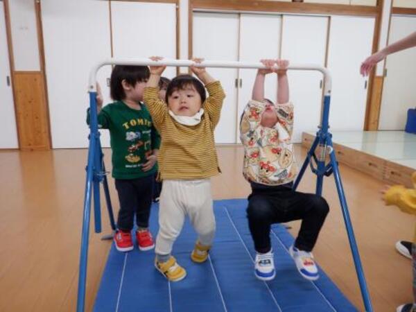 | 3月2日 月曜日 ちゅうりっぷさんは、ももさんと一緒にリズム運動しましたよ。 うさぎジャンプ、お馬はいはい、ゆらゆらボートなど、たくさん体を動かしました! その後、ちゅうりっぷさんは、鉄棒ぶらぶら、巧技台ジャーンプ!はしご渡りと これまた、たくさん、たくさん運動楽しみました! |