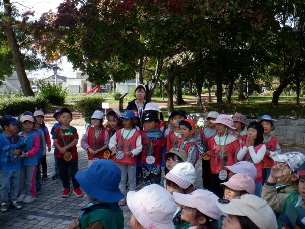 | 10月9日 木曜日 ちゅうりっぷさん ゼッケンつけて マラソンごっこ! 先生と一緒にゴールを目指して がんばるよ! 転んでもなかないよ〜 だって ちゅうりっぷさんだから!エッヘン 応援もできちゃうよ〜 ゆりさんから どんぐりメダルもらいました ちゅうりっぷさん 最後まで がんばりました! |