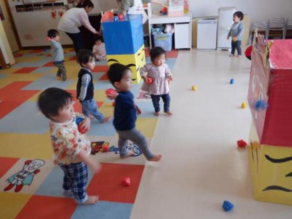 | 1月20日 火曜日 お遊戯室であそんだたんぽぽさんです。 おままごとや、デイバイクを使ってのドライブスルー屋さんごっこ 風船あそびなど楽しく遊んだあとは、 みんなで、だるまさんがころんだにチャレンジしました。 ルールを守って楽しく遊ぶことが出来ましたよ。 面白かったね。またやろうね! |
