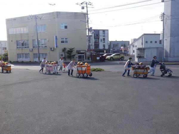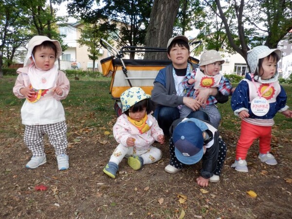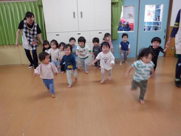 | 10月9日 木曜日 延期になったマラソンごっこ ももさん ワゴンに乗って参加! よ〜いドンの掛け声で ワゴンやベビーカーの乗ってゴール! 先生と一緒に走ってゴールもしましたよ ゆりさんから ドングリメダル かけてもらったよ |
