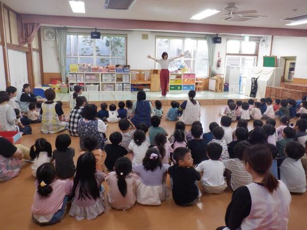 | 10月6日 月曜日 今日は、10月のお集まりが行われ、 園長先生から、食欲の秋、スポーツの秋、読書の秋 暑さも和らいで、おいしい食べ物をたくさん食べて たくさん体を動かして、楽しいことに 元気に参加しましょう!とのお話を聞きました。 そのあと、8日に行われるマラソンごっこの 決起集会も行いました。 園長先生から、各クラスにもらえる かわいいどんぐりメダルを見せてもらって よーし力が湧いてきたよ〜! マラソンごっこがんばるぞーーー!!! |