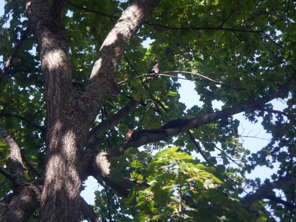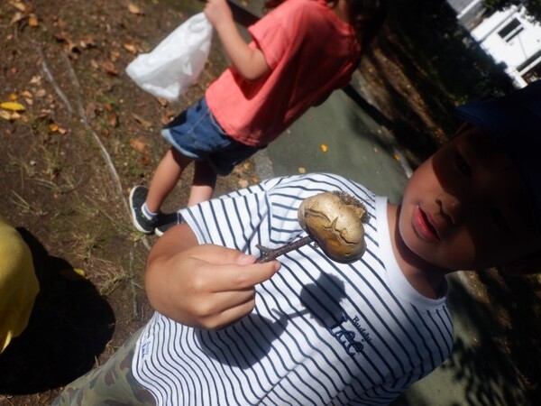 | 10月3日 金曜日 すみれさんは 遊歩道まで 秋を探しにおでかけ 何を見つけられるかな・・・? キノコを探そう! どんなキノコがあるかな? 見てみて! リス発見! 枝から枝へ飛び移り! すごい速さだね〜 いろいろキノコも見つけたよ ドングリや松ぼっくりも見つけました。 色々な秋を見つけてきたよ〜♡ |