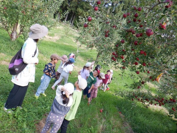 | 10月2日 木曜日 今日はリンゴ狩りの日! バスに乗って 出発! りんごの木ってどんなの? りんごいっぱいあるかな〜 ワクワク ドキドキ♡ わあ〜!りんごがいっぱい みんなでりんご かごいっぱいにしょうね ここのりんごをとるよ 脚立に登って 高い所も「よいしょ」 かごいっぱいのりんご こども園のお友達まってるね〜 いっぱいりんご持って帰るね〜♡ |
