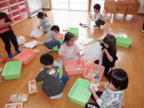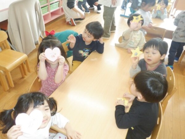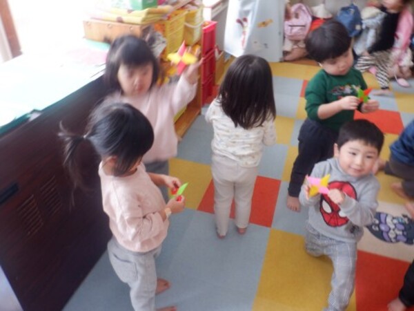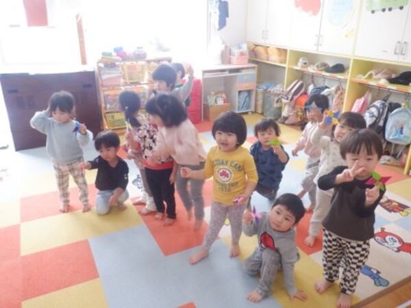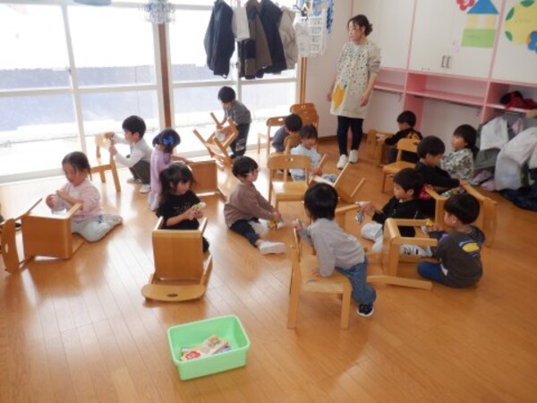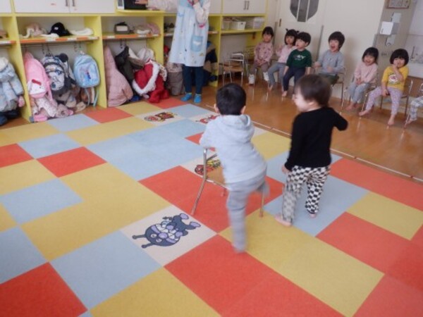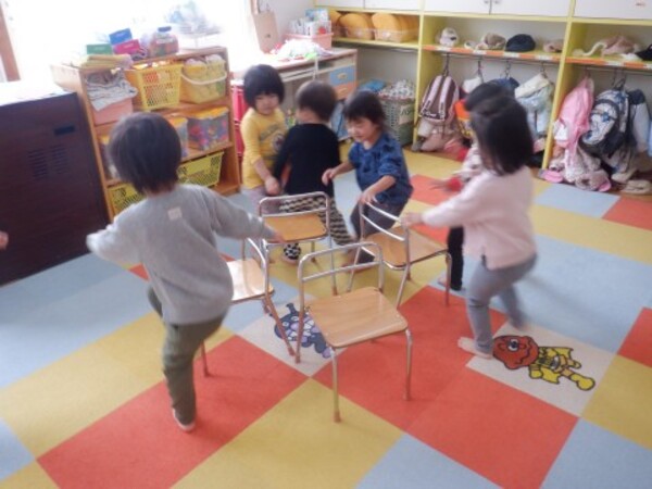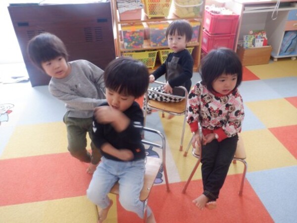 | 12月24日 水曜日 お部屋でお楽しみ会!! たんぽぽさん いす取りゲームに挑戦! 音楽に合わせて・・・ストップ!! いすに座って〜! いすがないよぉ〜 今度頑張る! 宝探しもやったよ 手裏剣のお宝 どこかな? 色々さがして 見つけたよ〜♡ お楽しみ会 楽しかったね♪ |
