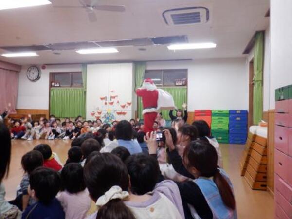 | 12月25日 木曜日 今日は、クリスマス会が行われました。 園長先生のお話を聞きながらも、みんなドキドキ。 鈴の音が聞こえて、サンタさん登場‼ みんな、大喜び♪ さっそく、サンタさんに質問してみましたよ。 どこから来たの?好きな食べ物は?などなど。 質問に、たくさん答えてくれました。 その後は、お楽しみのプレゼントを、一人ずつ 名前を呼んでもらって、頂きました。 「やったーサンタがやってきた!」の、お歌をうたって ジングルベルの踊りを踊って、楽しいサンタさんと 楽しい時間を過ごしました。 メリークリスマス!サンタさん、来年もまた来てね〜♡ |