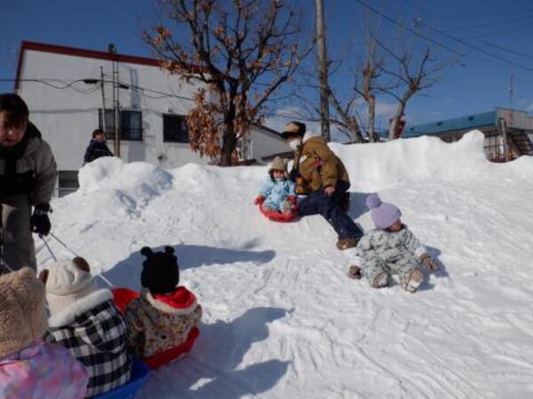 | 2月7日 土曜日 少し風がありましたが、良いお天気となり予定通り、親子そり遠足が 行われました。ゆりさん、すみれさん、さくらさん、たんぽぽさんは、 親子で歩いて美芳第一公園へ。頑張って歩きましたよ。 公園では、おしりすべり、そりすべりとそれぞれ親子で楽しみました。 最後に、ミカン拾いをして、笑顔で園に戻っています。 親子で楽しい時間を過ごしましたよ。 保護者の皆様、大変お疲れ様でした。 |