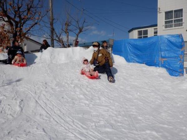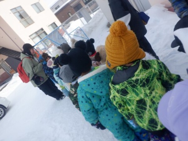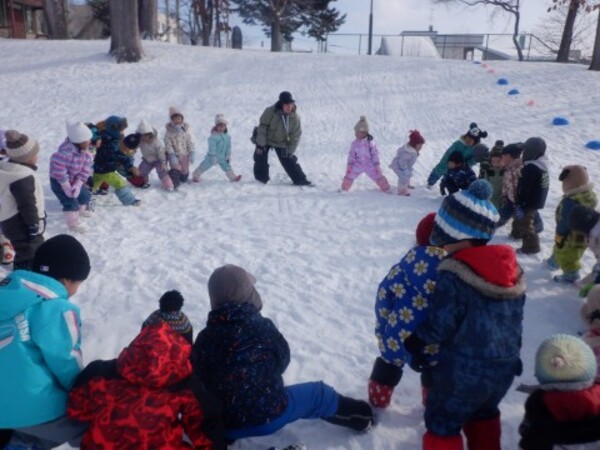 | 2月6日 金曜日 今日はさくらさんと一緒に ピアソン公園へお尻滑り!! やったあ〜!! 準備体操はOK! たくさんすべるぞ!! みんなでいっぱい滑ったね たくさん 遊んで お腹もペコペコだね |