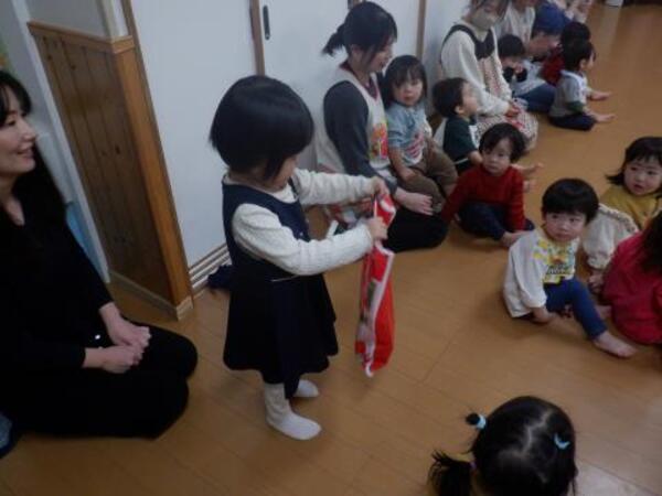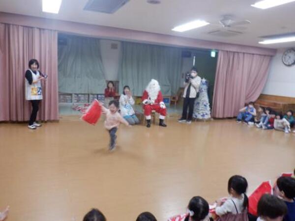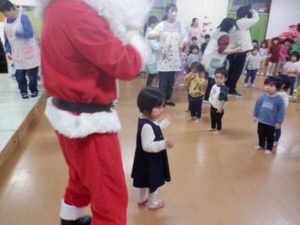 | 12月25日 木曜日 今日はクリスマス会に、二人のお友だちが遊びに来てくれました。 プレゼントをもらって、サンタさんと踊りを踊って 楽しく過ごしましたよ。 また、来てくださいね〜! |