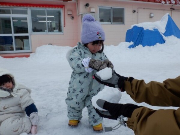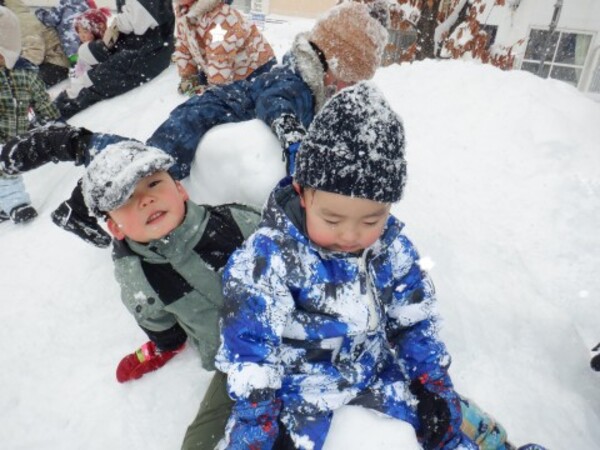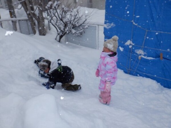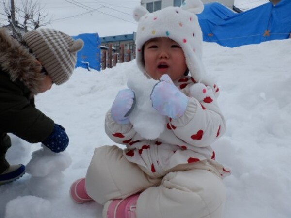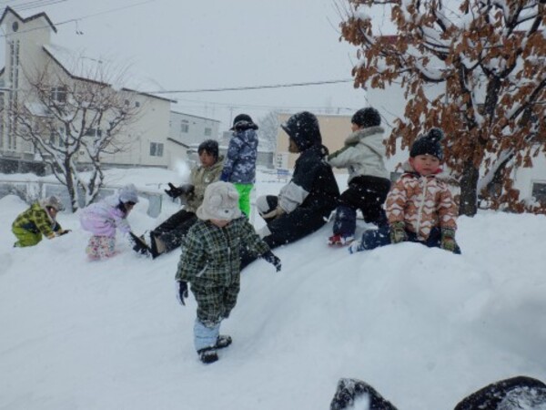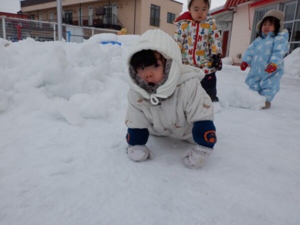 | 12月24日 水曜日 ももさん 遊びの準備をして お庭へGO! 雪を触って きゃあ〜冷たい! お山をよいしょ よいしょ 登って シュ〜滑ったよ 雪の上をお友達と一緒に 歩いたり 雪遊び 楽しいね♪ |