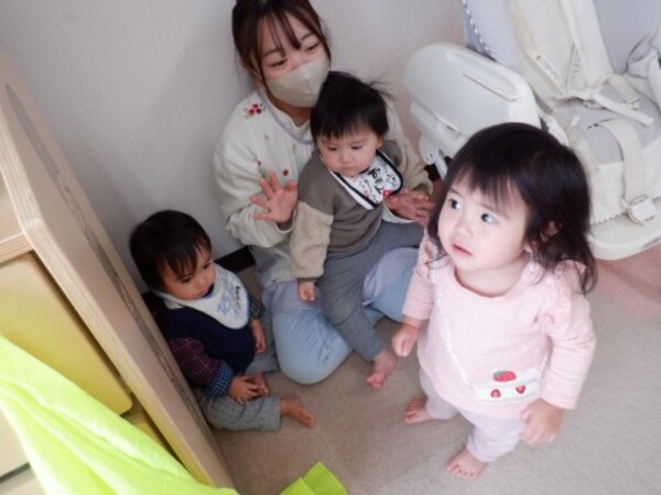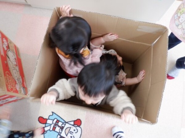 | 12月26日 金曜日 ももさん お部屋でかくれんぼ遊び 「もう いいかい?」 「まぁ だだよ〜」「みぃつけた!」 段ボールに隠れたよ おおきな布の中にかくれちゃお♡ 見つけられないように・・・ しぃ〜・・。 お友だちみぃつけた! かくれんぼ 楽しいね♪ |