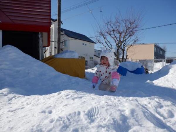 | 2月10日 火曜日 とっても良いお天気。眩しいおひさま。 そして、暖かいね。 ももさんは園庭で、そりあそびや、おしりすべりを 楽しみましたよ。 園庭を歩いたり、ちゅうりっぷさんから氷をもらったり いっぱいいっぱい、遊んだね〜♪ |