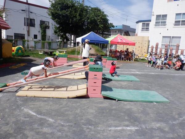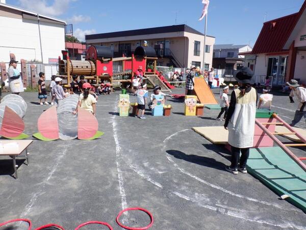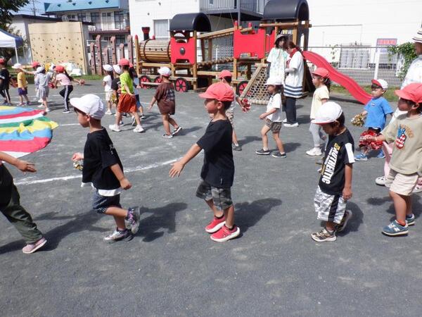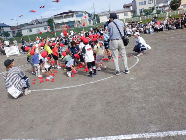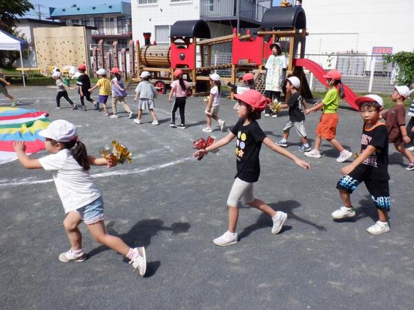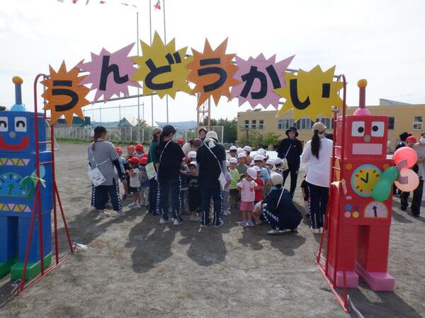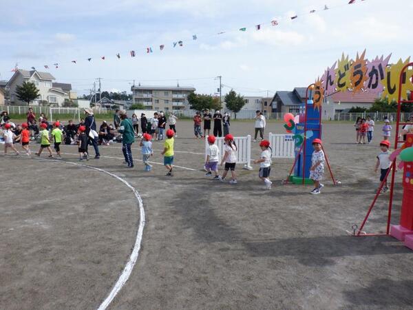 | 9月13日 土曜日 今日は、運動会! お天気に恵まれ、開催することが出来ました。 いつもと違う雰囲気の中で、みんなすごーく 頑張りました! 入場行進、うた、体操、玉入れ、綱引き 力いっぱい走ろう、親子競技、個人競技 おゆうぎ、バルーン、紅白リレー とっても盛り上がっていましたね。 子育て支援、小学生競技ご参加くださった皆様も ありがとうございました。 そして、お手伝いしていただいた保護者の皆さま、 大変感謝いたします。ありがとうございました。 |
