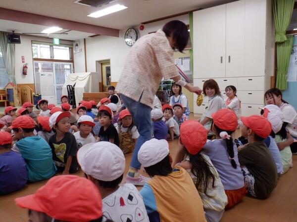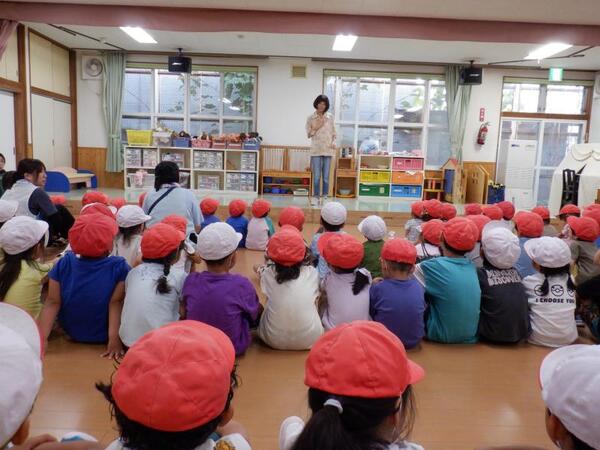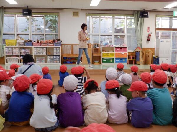 | 9月9日 火曜日 今日は、お遊戯室に集まって 土曜日の運動会の決起集会が行われました。 園長先生から、がんばったら、キラキラりぼんと 大きな大きなぴかぴかメダルがもらえるよ〜!との お話があり、みんなで、うぉおおおおー! がんばるぞーーー!!! |