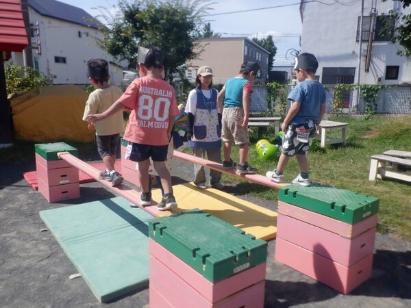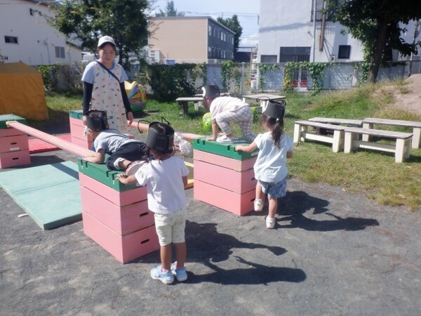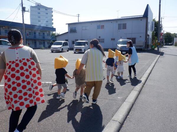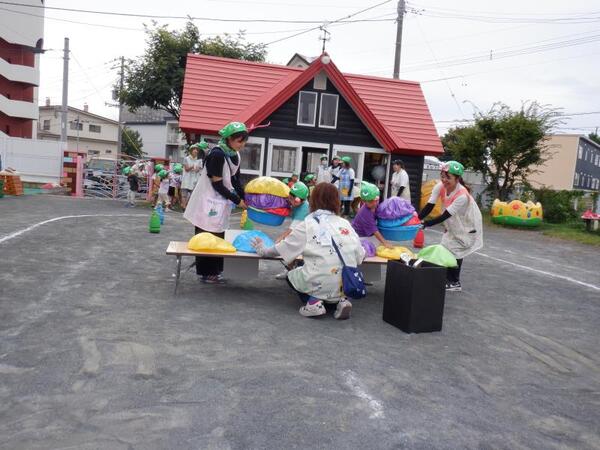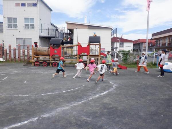 | 9月16日 火曜日 今日は、避難訓練が行われました。 地震発生、今回から防災頭巾を被って避難です。 揺れが大きくなって、石北公園まで走っての 避難も行いました。 みんな、真剣な表情で走って、無事石北公園まで 避難出来ました。 避難場所が変わる体験をしましたよ。 |