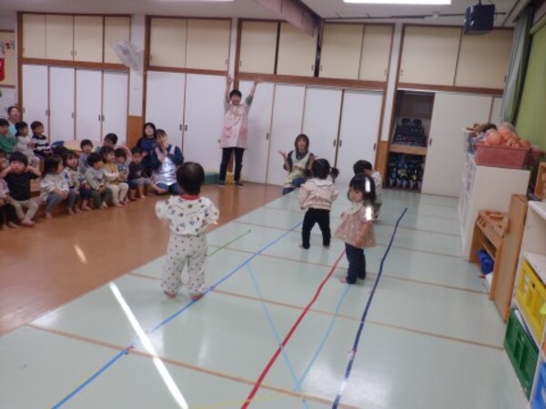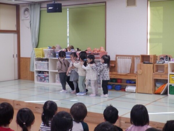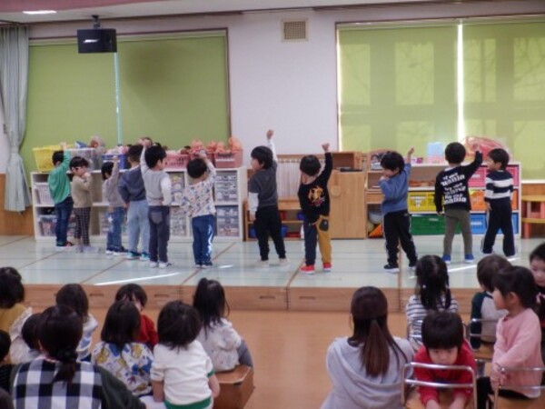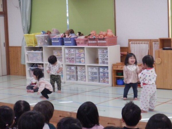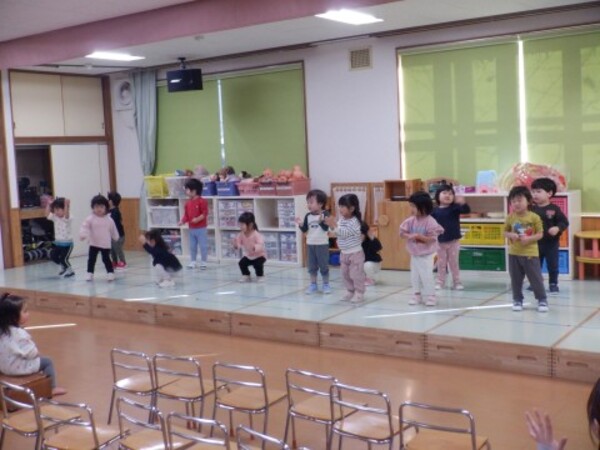 | 12月19日 金曜日 12月のお誕生会の出し物は お遊戯会の踊り さくらさんやすみれさん ゆりさんもステージで踊りました。 もちろん みんなでノリノリ♬に 一緒に踊って楽しみました。 また みんなで踊りたいね♪ |