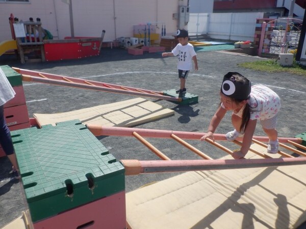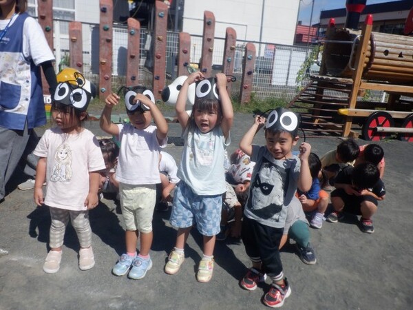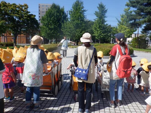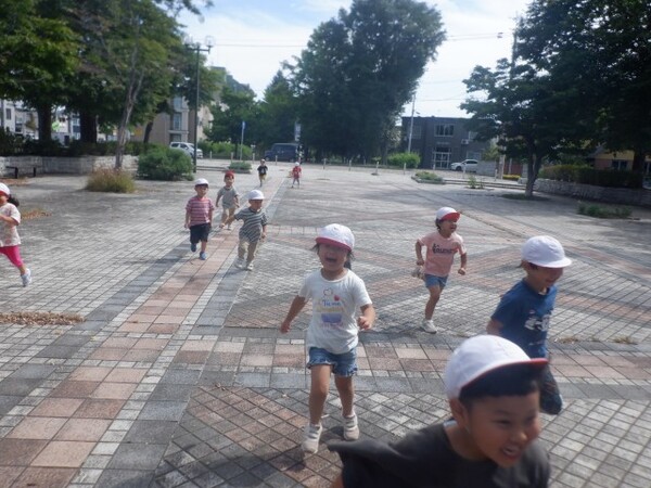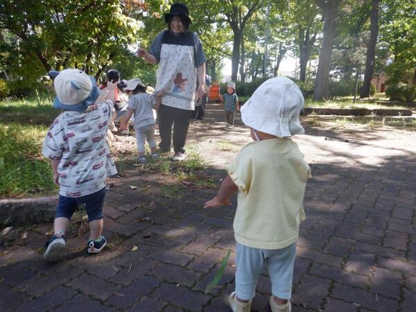 | 9月11日 木曜日 久しぶりに遊歩道までお散歩! ひさびさのお散歩で ルンルン気分のすみれさん お友達とのお話が弾んだよ 公園についたら 早速 虫探し! ありだあ〜! 変な虫がいるよ! おにごっこしょう! こおり鬼しよう! みんなで好きな遊びを楽しんだよ 久しぶりのお散歩 たのしかったね |