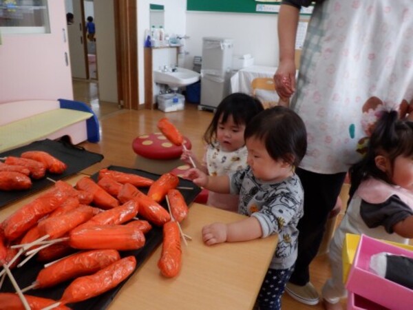 ももさん 温泉大好き! 温泉ごっこへレッツゴー!!のももさん温泉大好き!タオルをもらって おふろへGO〜!しっかり 体も温まって食べ物やさんにも行きました。今日はなんと!お店屋さんにも挑戦したよ〜お兄さんたちの真似をして「どうぞ〜♡」 かわいいおみせやさんだよサウナやゲームコーナーでも遊びました。ごっこ遊び楽しかったね♪ 2025/10/31