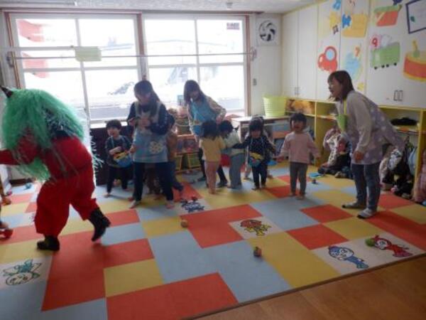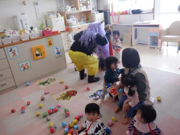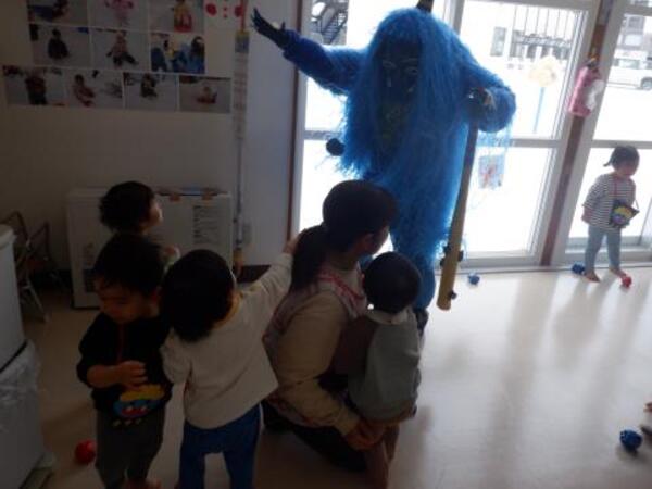 節分です。豆まきです。 2月3日 火曜日今日は、節分で、豆まきが行われました。ももさん、ちゅうりっぷさん、たんぽぽさんは、お部屋で。さくらさん、すみれさん、ゆりさんは、お遊戯室でそれぞれ行われました。園長先生のお話しを聞いて、作戦を立てて、お歌をうたってエイエイオーの時に、鬼登場‼おにはーそと!ふくわーうち!と、頑張る姿もありましたが、やっぱり怖かったようで、涙、涙となりました。 2026/02/03