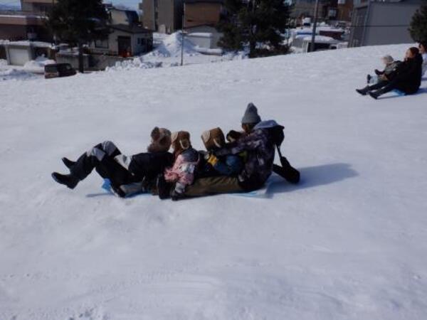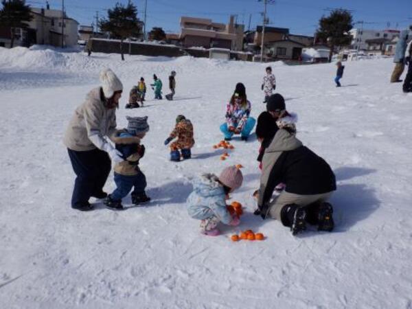親子そり遠足 2月7日 土曜日少し風がありましたが、良いお天気となり予定通り、親子そり遠足が行われました。ゆりさん、すみれさん、さくらさん、たんぽぽさんは、親子で歩いて美芳第一公園へ。頑張って歩きましたよ。公園では、おしりすべり、そりすべりとそれぞれ親子で楽しみました。最後に、ミカン拾いをして、笑顔で園に戻っています。親子で楽しい時間を過ごしましたよ。保護者の皆様、大変お疲れ様でした。 2026/02/08
